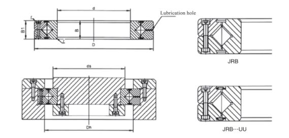 Скрещенный роликовый подшипник серии JRB оснащен разъемным наружным кольцом из двух частей и цельным внутренним кольцом, они подходят для применения в условиях, где требуется высокая точность хода внутреннего кольца.